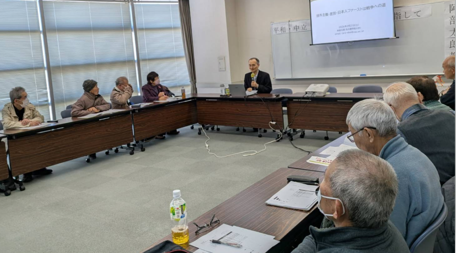 2/21 阿部太郎さん講師に学習会 2月21日、岩倉革新懇は、学習会「排外主義の矛先は差別・分断、戦争への道?」と題して革新・愛知の会代表世話人の阿部太郎名古屋学院大学教授を講師に開催しました。 阿部太郎さんは、排外主義はなぜ広がっていく…
