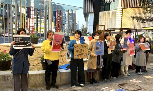1月19日、名鉄豊田市駅マック横で「さよなら自民党政治の終焉を」と行動。 12時30分から13時までトーク。「何故今衆議院解散選挙なの?」「予算審議もしないで党利党略だ」「トランプは何する人ぞ。国際法無視の略奪ではないか」など街行く人に訴…