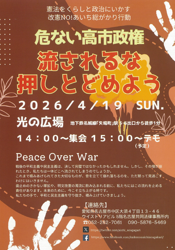 /「3つの共同目標」を支持する勢力の躍進をめざし革新・愛知の会は 地域・職場でつながり活かし広げ、対話を尽くします ―第51回総選挙にあたってのアピール 2026年1月23日 平和・民主・革新の日本をめざす愛知の会(革新・愛知の会)代表世話…