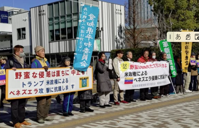 野蛮な侵略は、直ちに中止を!トランプ米政権によるベネズエラ攻撃に抗議します! 2026年2月13日 ニュース 革新・愛知の会の活動 平和委員会と安保廃棄が緊急に呼びかけ 1月6日、「野蛮な侵略は、直ちに中止を!トランプ米政権によるベネズエラ攻撃に抗議します!」と、平和委員会と安保廃棄が緊急に呼びかけた抗議行動に革新・愛知の会からは土井敏彦代表世話人、蛯原事務室長はじめ参加し、訴えました! 緊急な呼びかけに応えて35名を超える参加者が声を上げました。マスコミも取材に駆けつけていました。「全国各地で、抗議の声を上げましょう!高市政権は、アメリカ、トランプの蛮行に抗議の声をあげろ!」と訴えました。 このページをシェア
