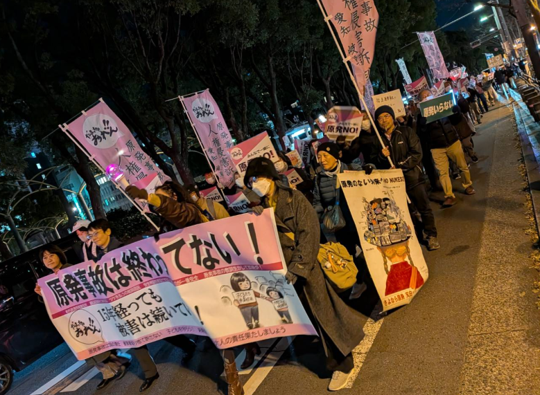 3月11日夕、光の広場で集会とデモが行われました。集会では〇だまっちゃおれん訴訟・弁護団〇老朽原発40年廃炉訴訟・市民の会〇岐阜被爆2世の会〇原発おことわり三重の会〇さよなら原発みの・せき・かも〇中部電力本店 反原発金曜日行動 市民の会〇脱原発 関電前金曜行動〇Cラボ市民放射能測定センター〇中電対話デー〇原発なくす愛知の会がスピーチ。デモ行進では街頭で、チラシ配布、デモに青年2人が参加してくれたり、道行く人に原発なくそう!と訴えました。